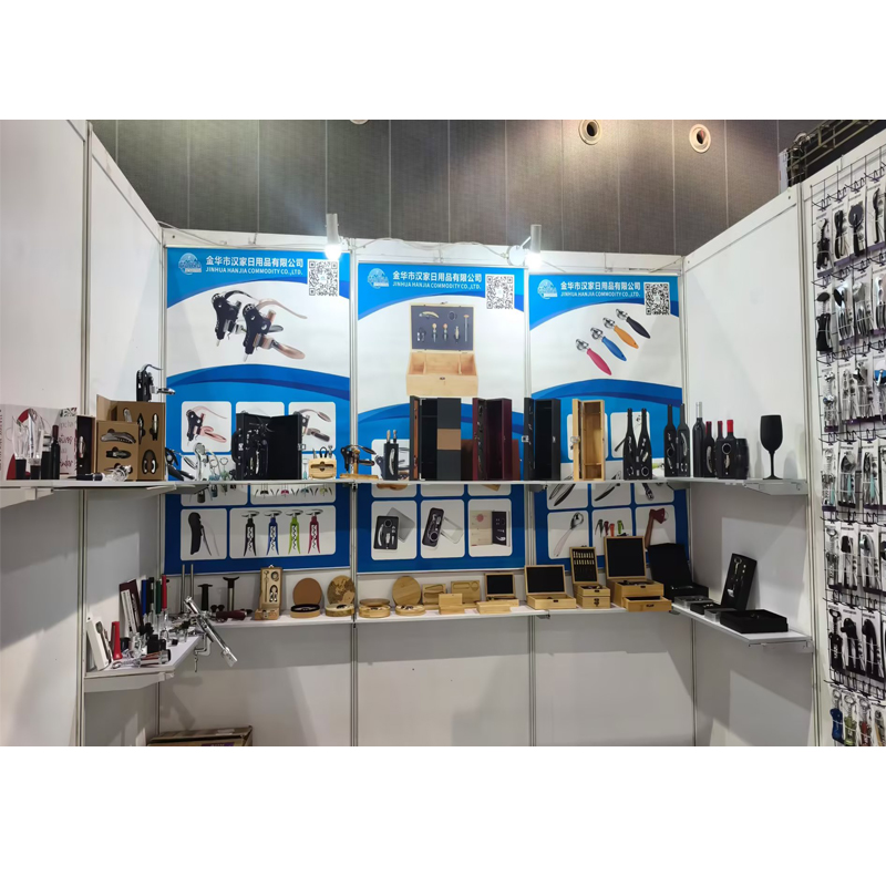 Společnost Jinhua Hanjia Commodity Co., Ltd., která se nachází ve stejném administrativním regionu jako výstaviště a do jedné hodiny jízdy od města Yiwu Small Commodities City, si užívá inherentních výhod regionálního ekonomického výrobního řetězce. S využitím prosperujícího mezinárodního obchodního prostředí elektronického obchodu v Yiwu naše společnost vybrala sedm produktových řad a stovky položek vhodných pro domácí a mezinárodní platformy elektronického obchodu, domácích i zahraničních výrobců zboží a podnikatelů. jako vývrtky na víno z nerezové oceli a slitiny, zátky na víno, nářadí na šampaňské, lisy na česnek, louskáčky na ořechy, otvíráky na konzervy, škrabky, šlehače na maso, koktejlové šejkry, nerezové lahve, karafy na víno, dřevěné a PU sady na víno, krabice na víno a další.